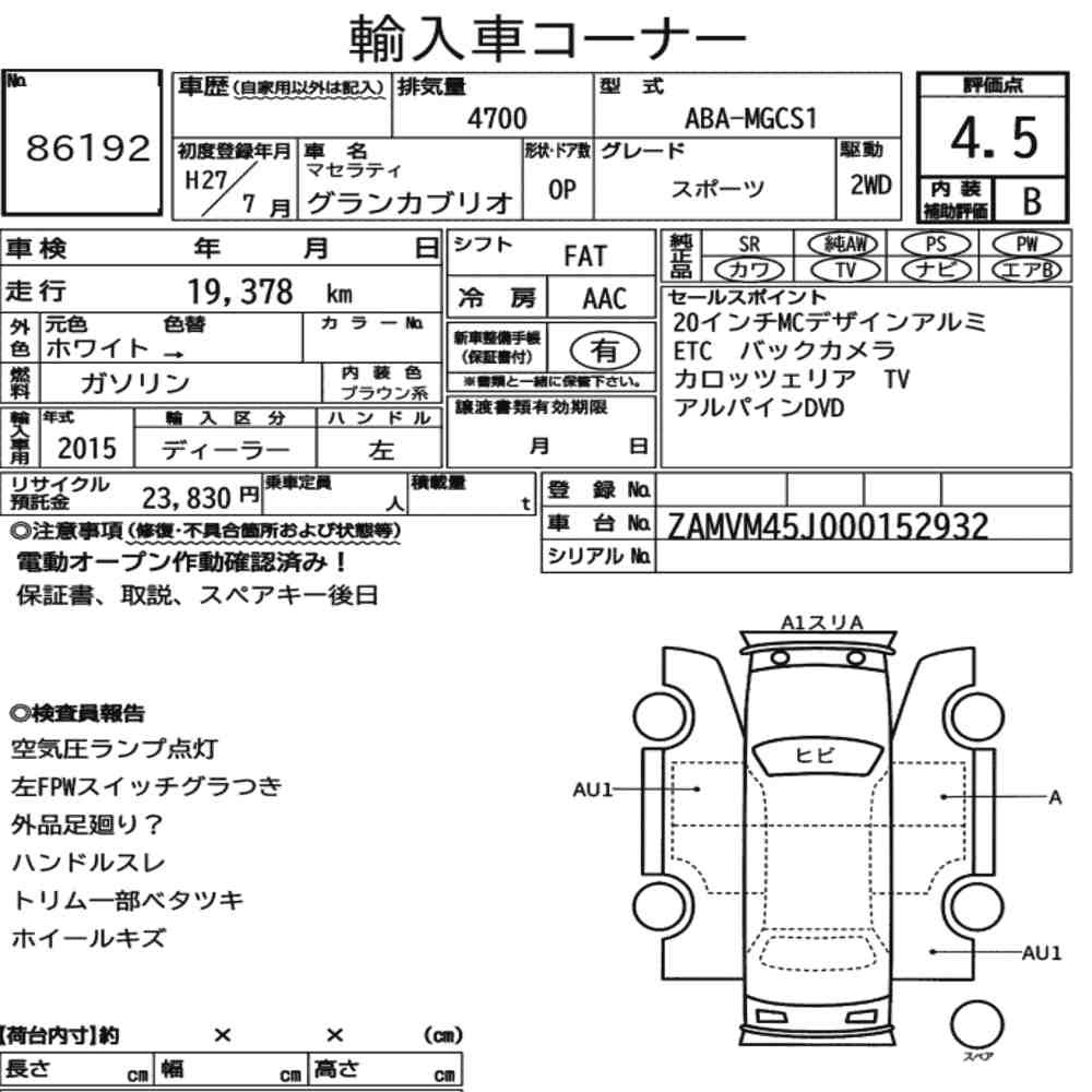 pa_mileage icon20.000pa_location iconYokohamapa_capacity icon4700lot icon86192pa_rank icon4.5pa_gearbox iconAT